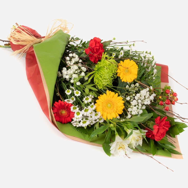 This simply wrapped collection of flowers is the perfect way to send your message of good wishes.